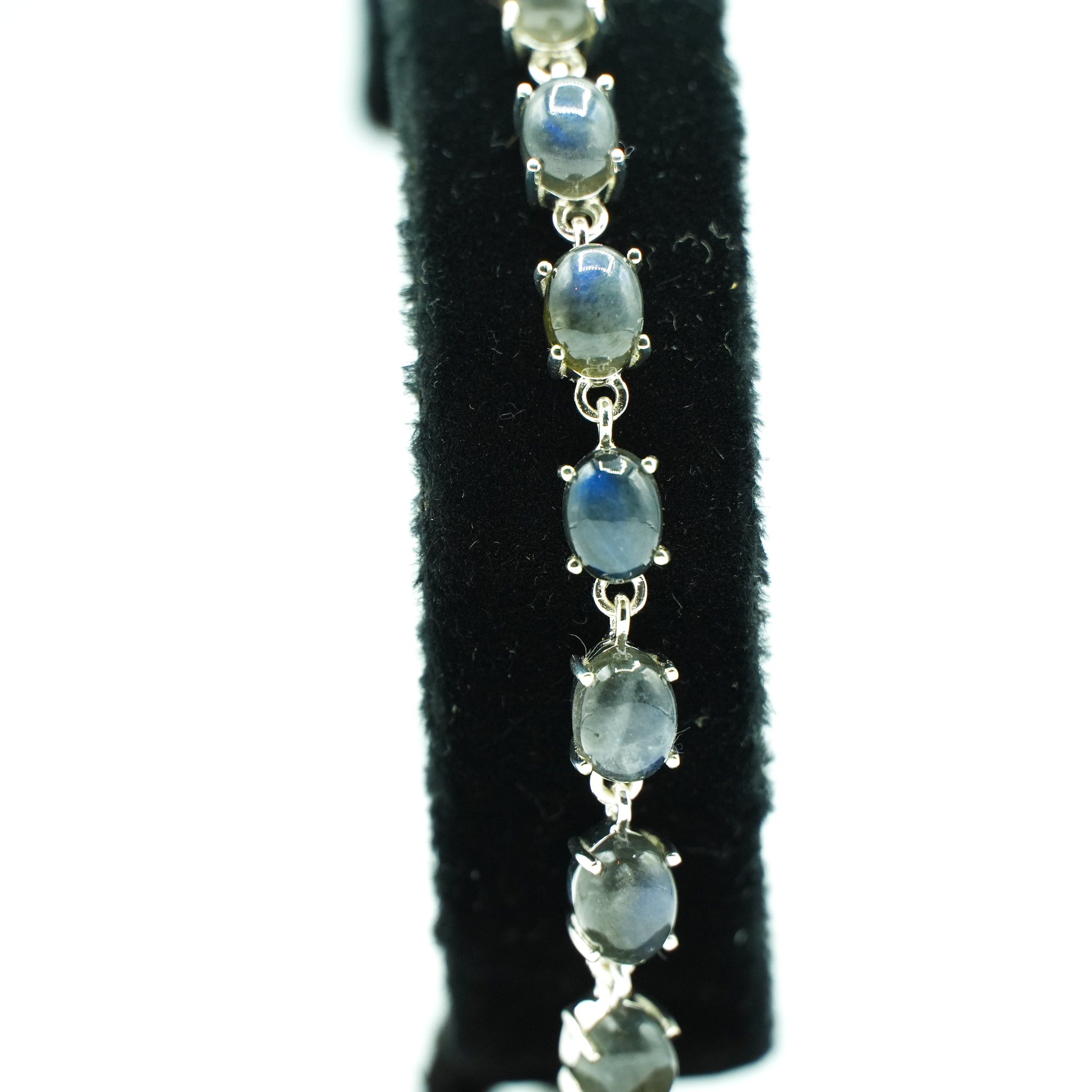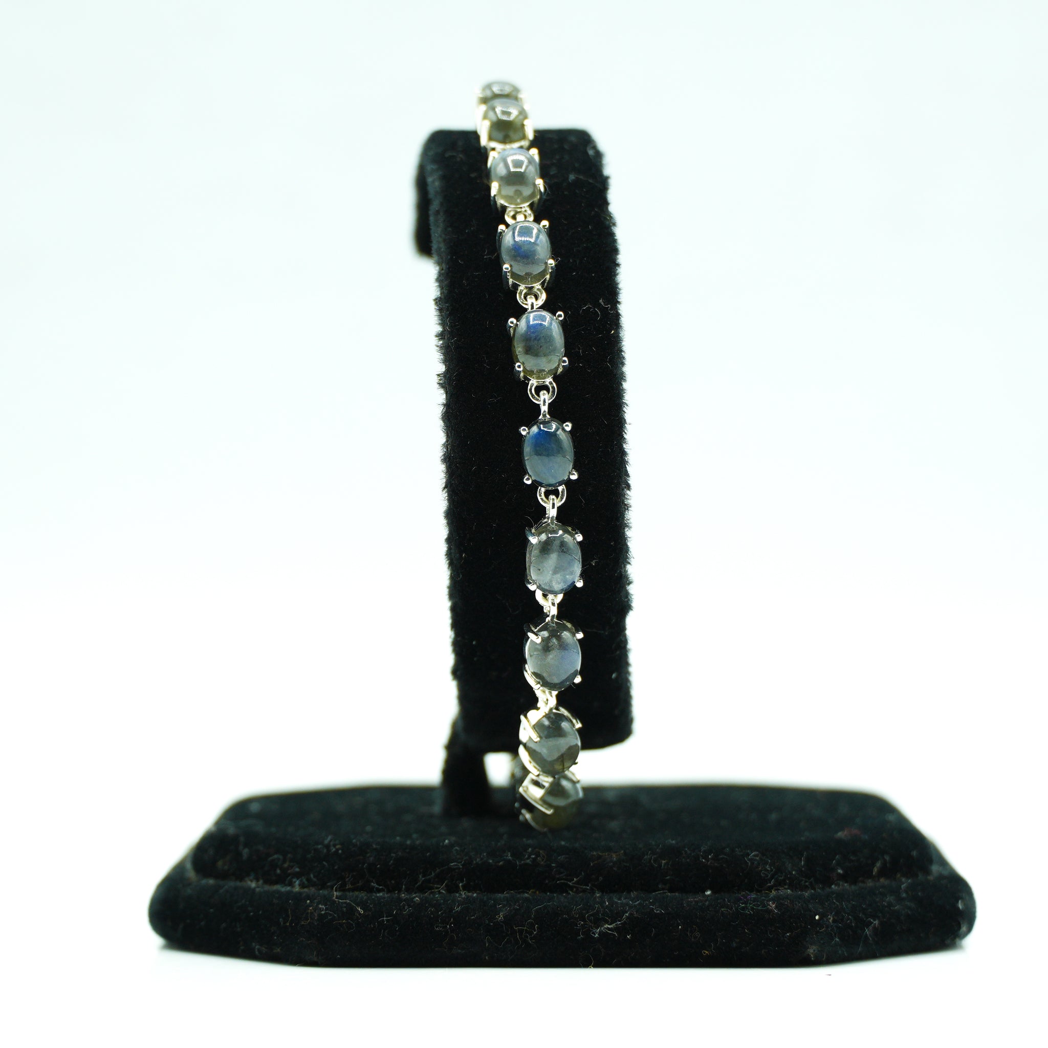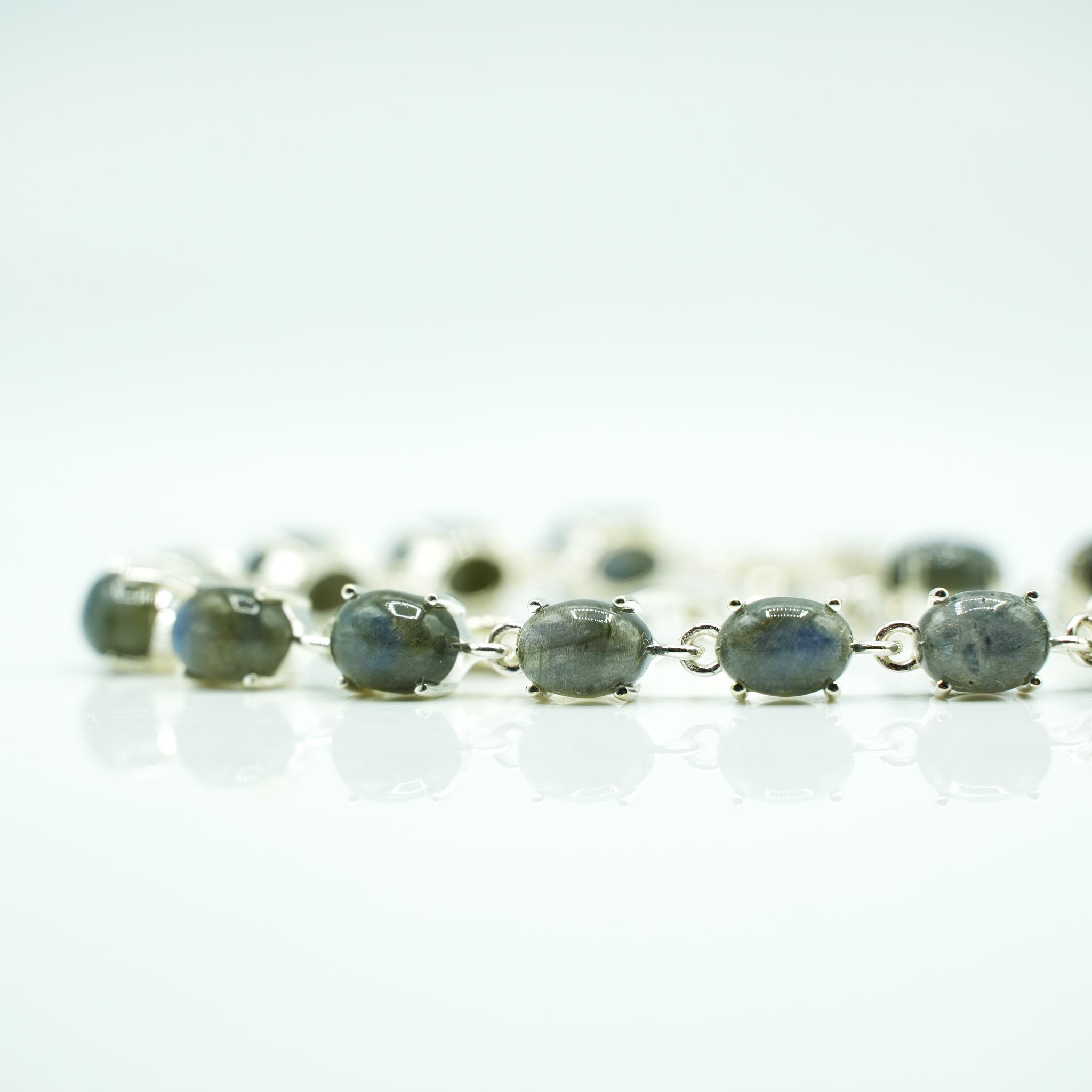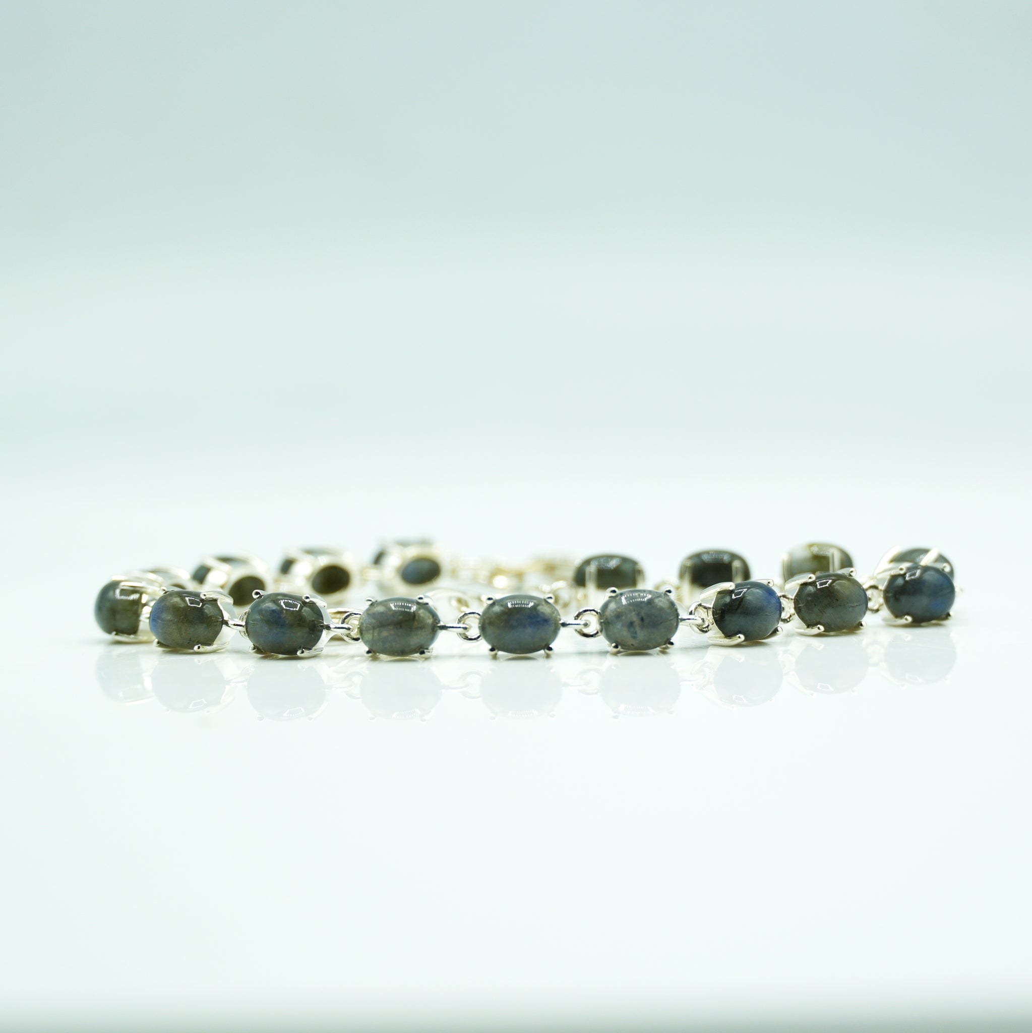 Labradorite Silver Bracelet set with cabochon-cut gemstones in Prong Settings