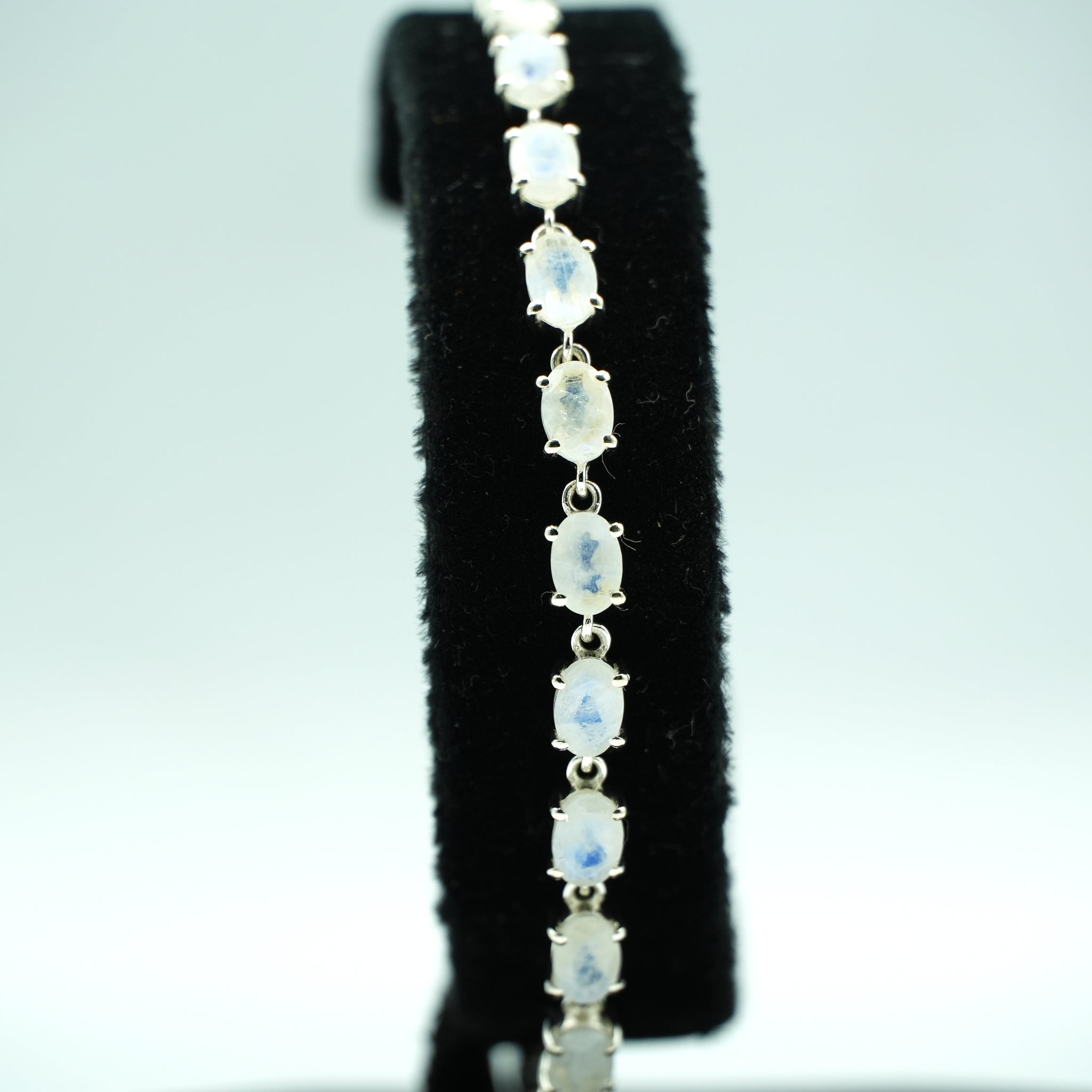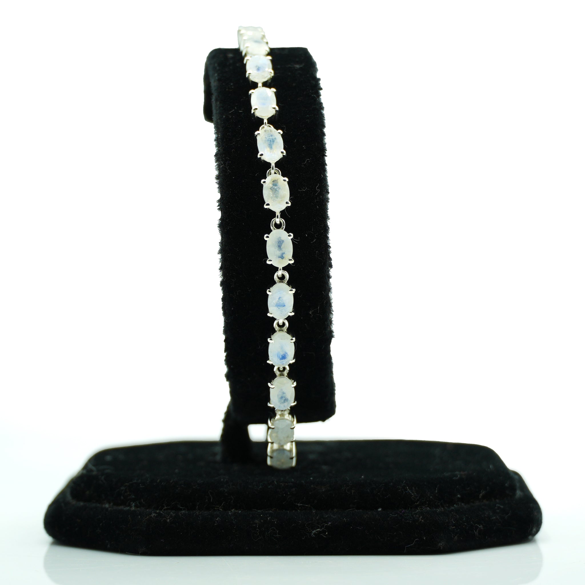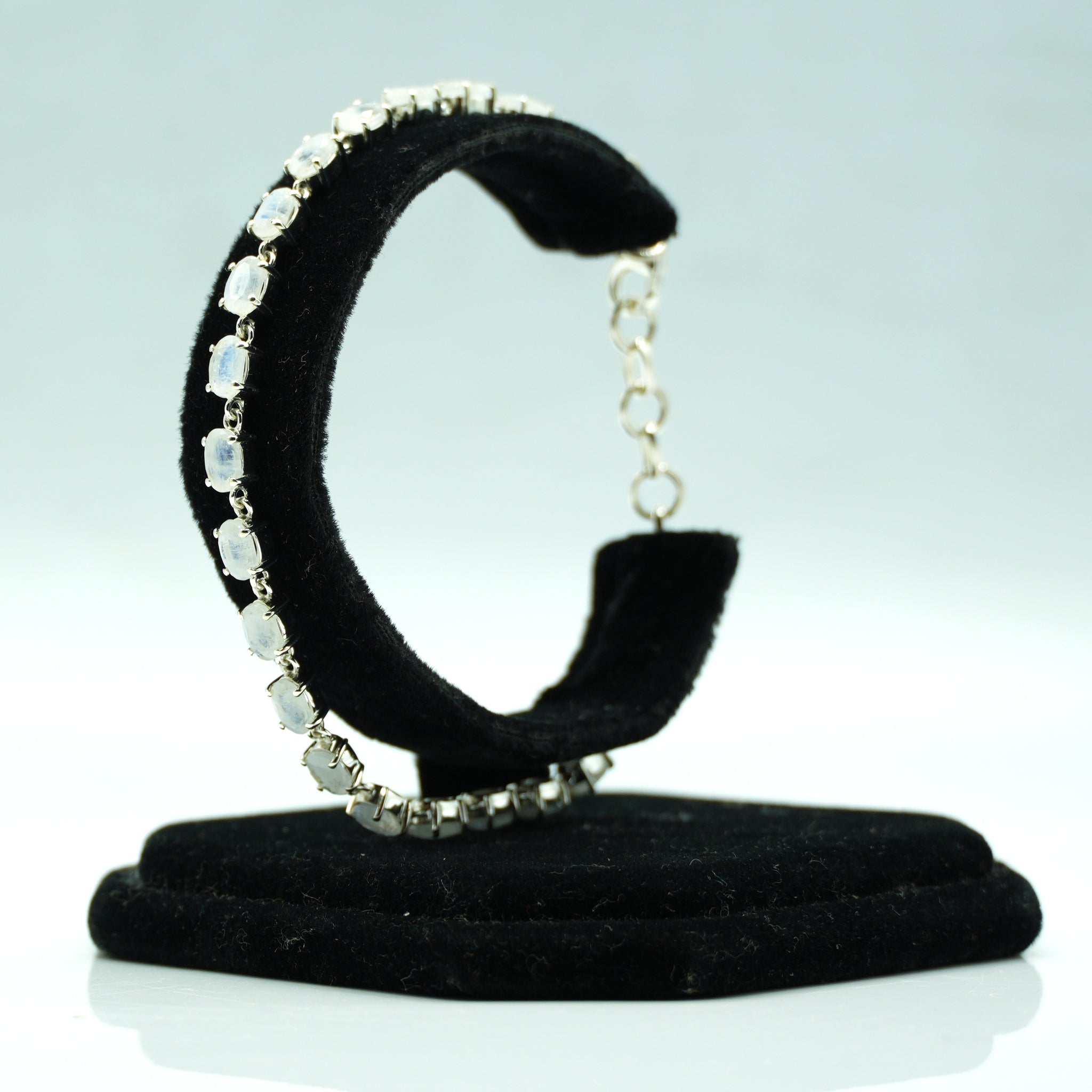 Moonstone Silver Bracelet set with cabochon-cut gemstones in Prong Settings