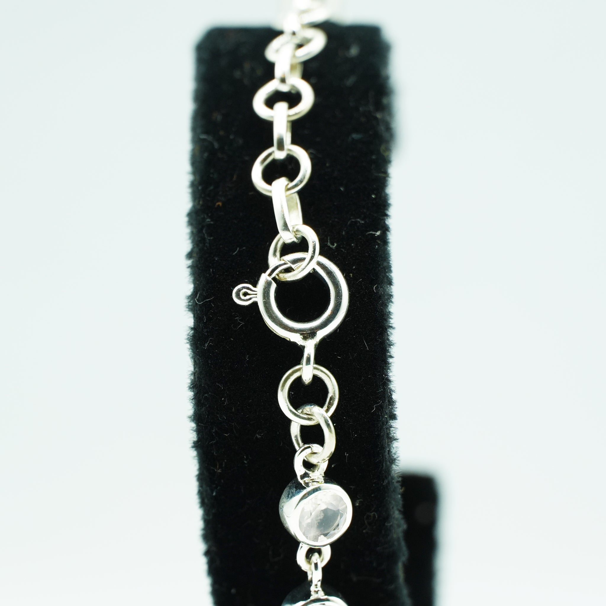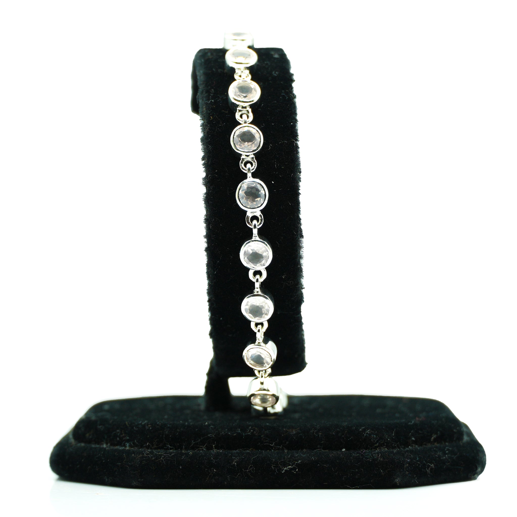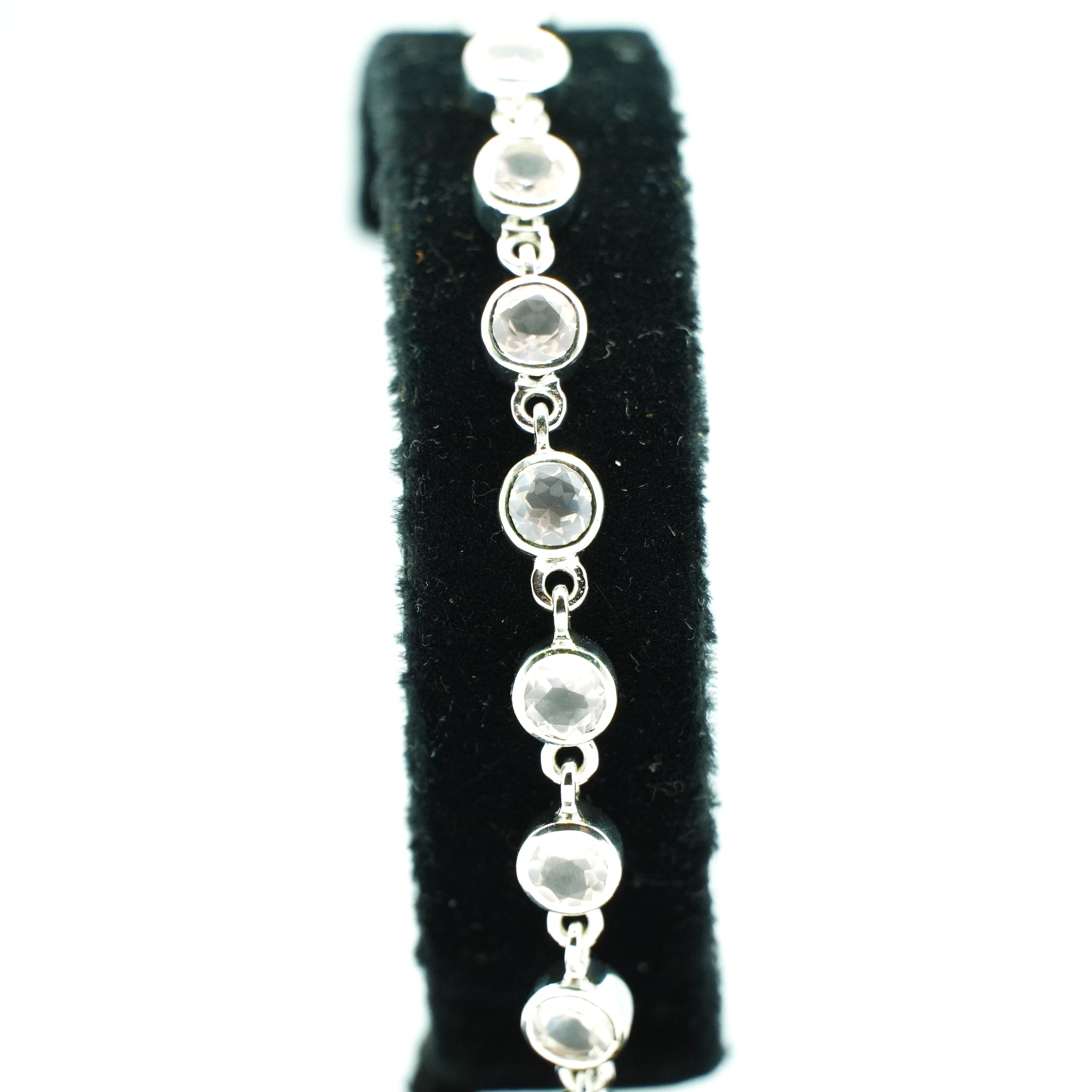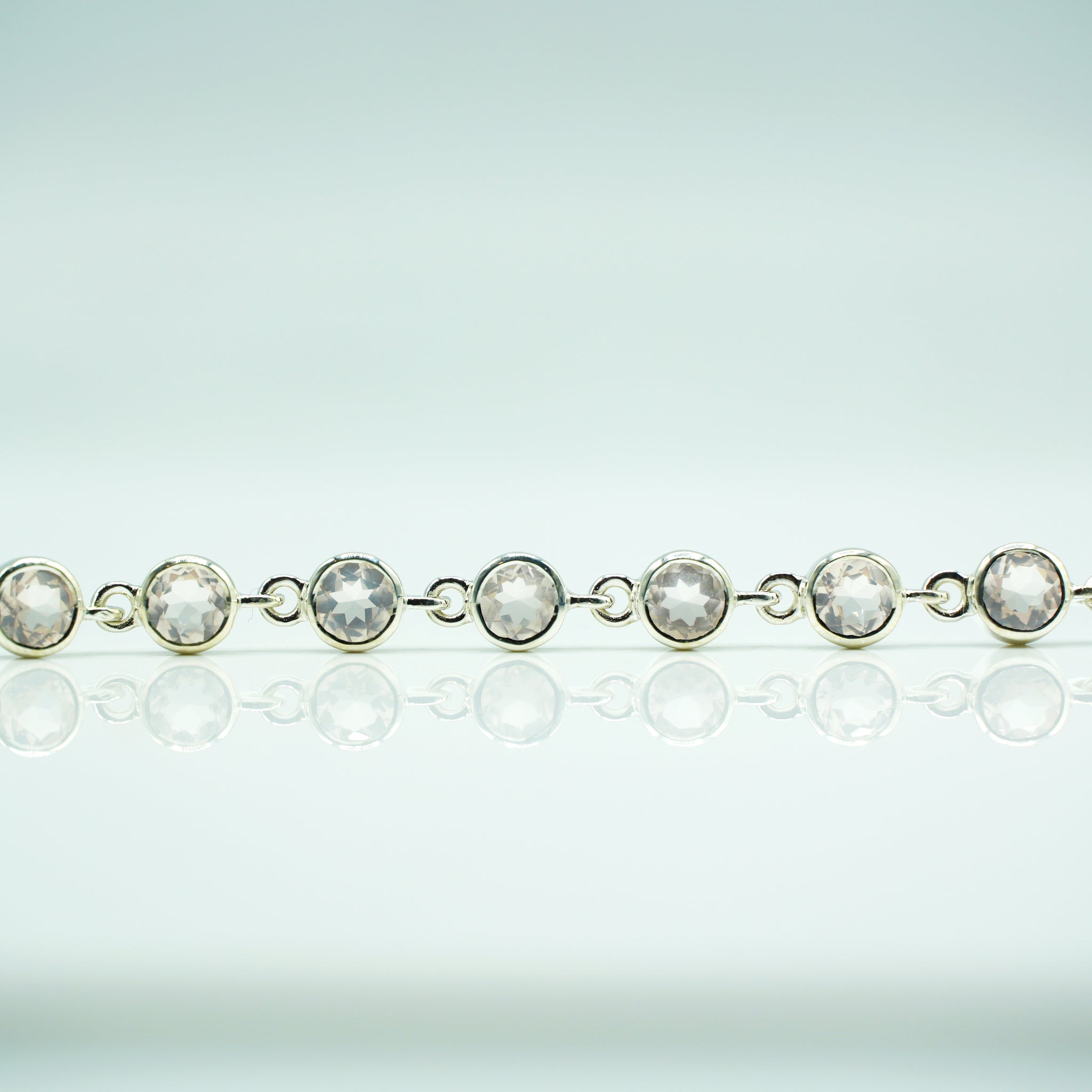 Quartz Silver Bracelet set with cabochon-cut gemstones in Prong Settings