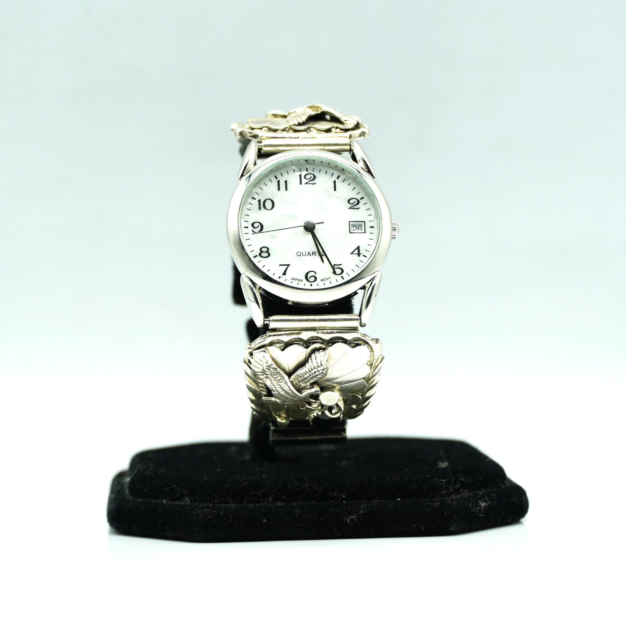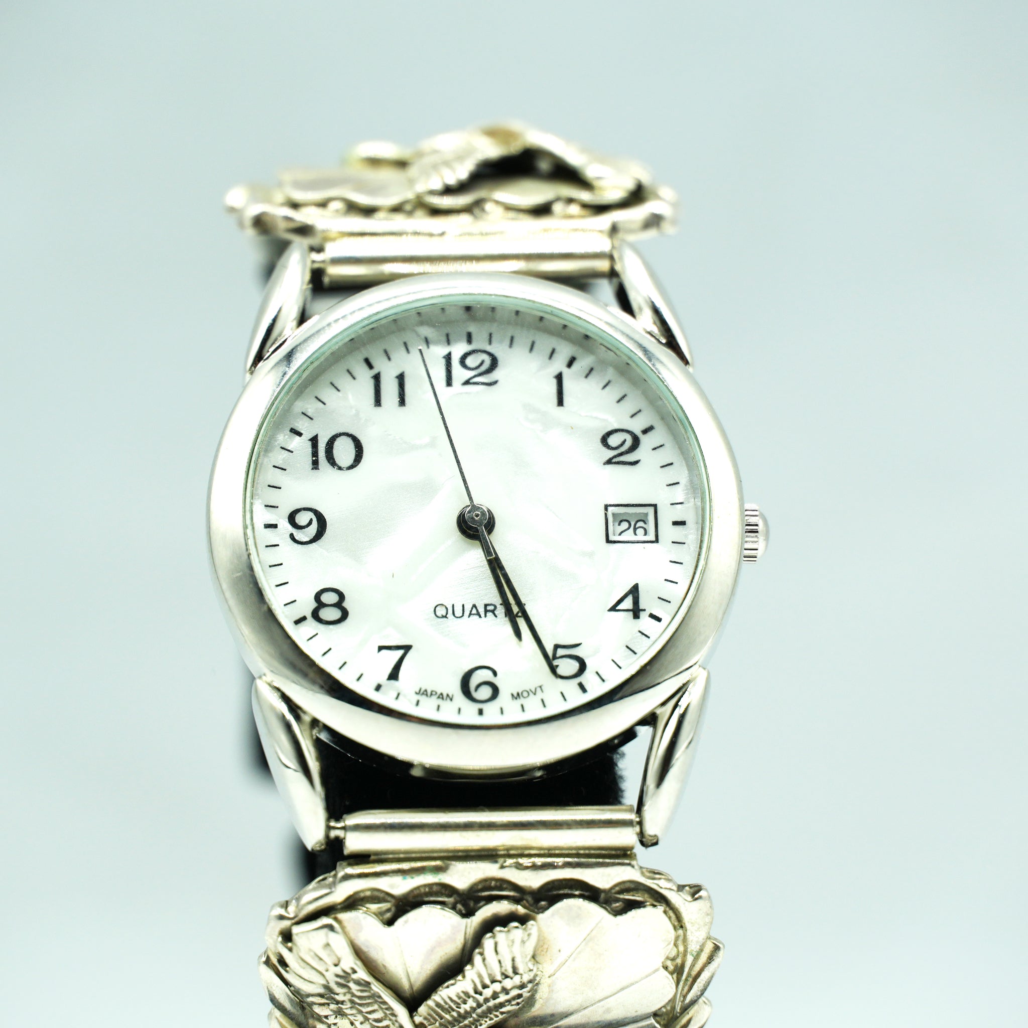 Navajo Sterling Kokopelli Silver Watch with Mother of Pearl Face – HandcraftedSterling Silver