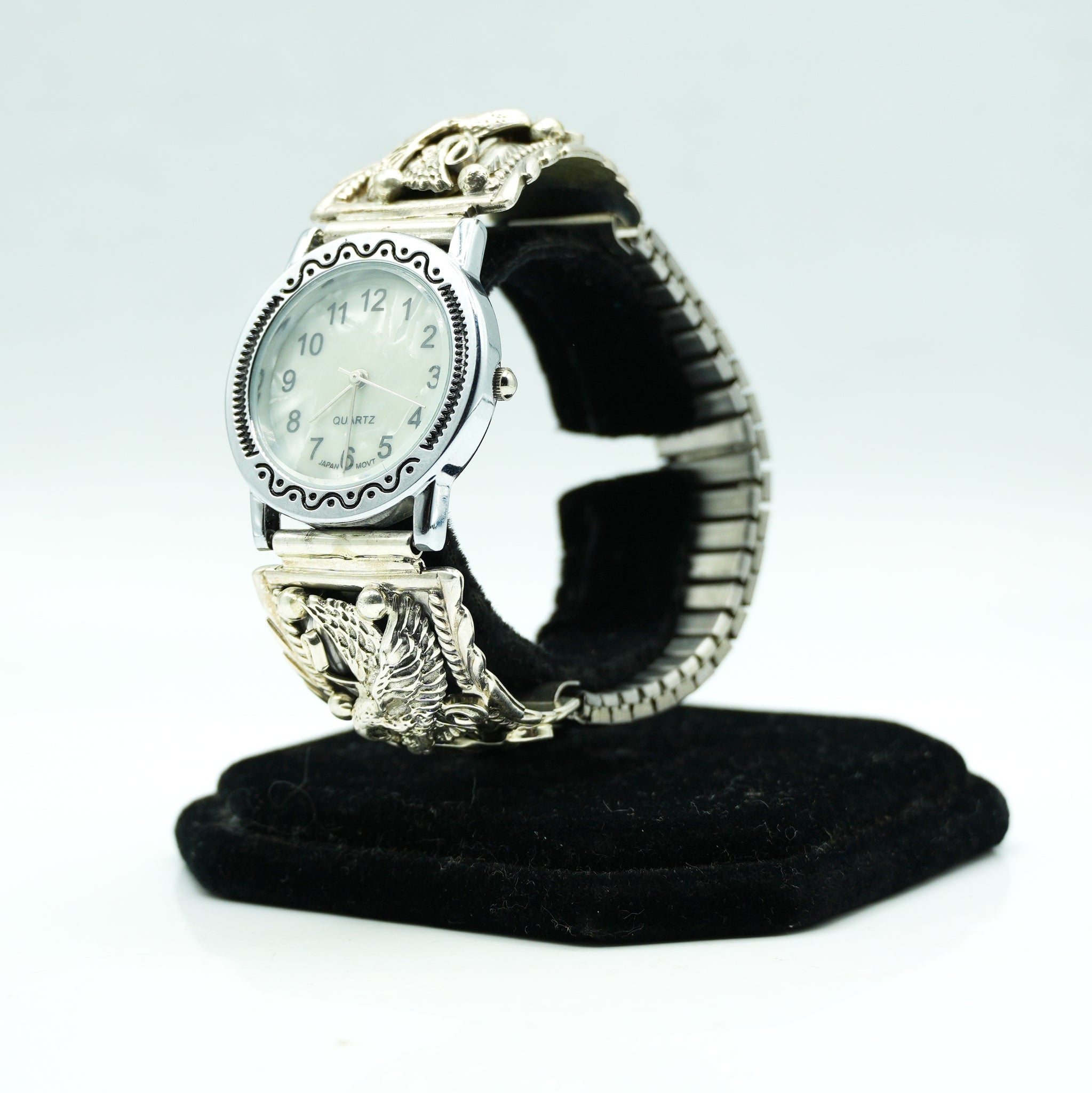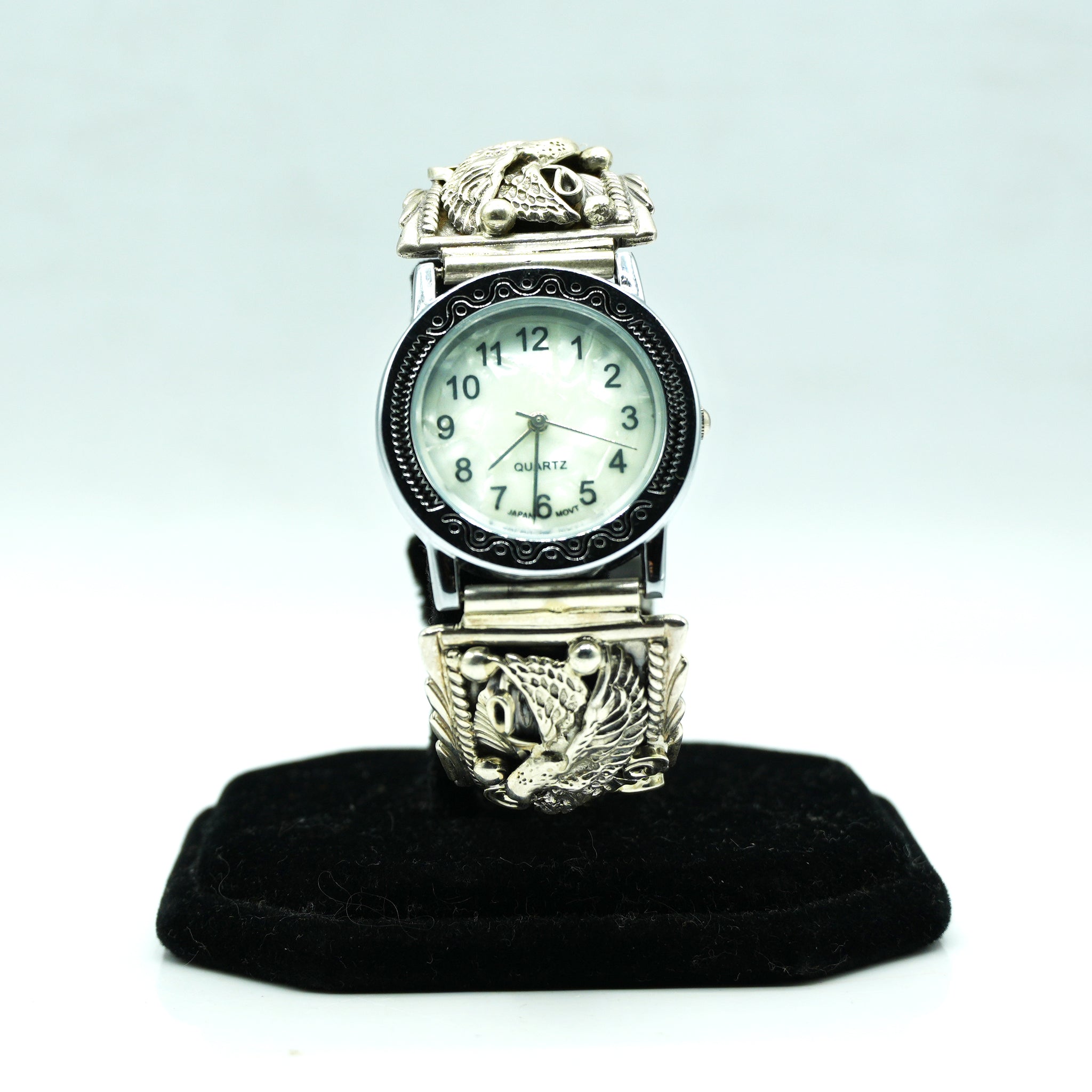 Navajo Sterling Silver Watch with Mother of Pearl Face – Handcrafted Sterling Silver