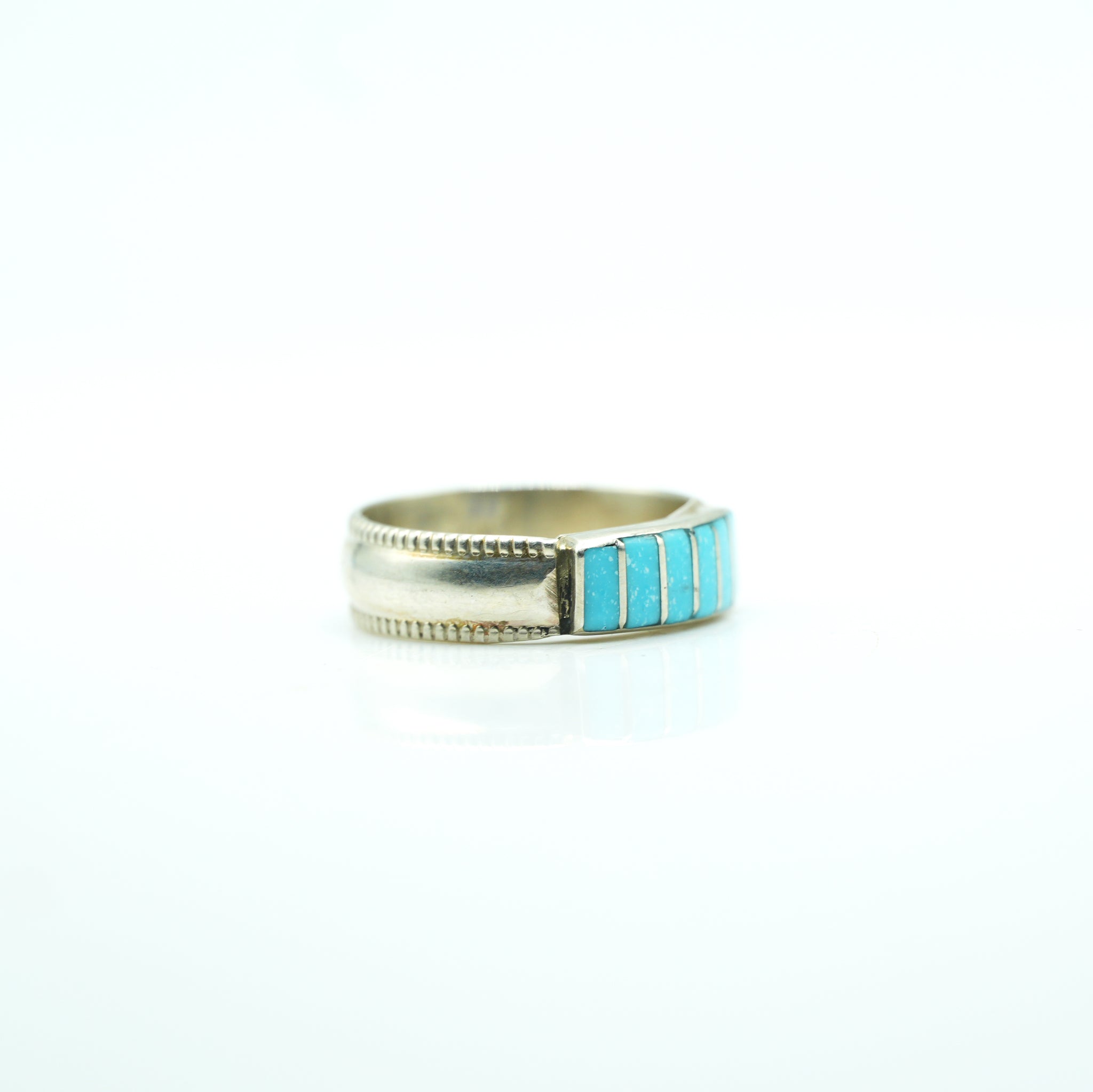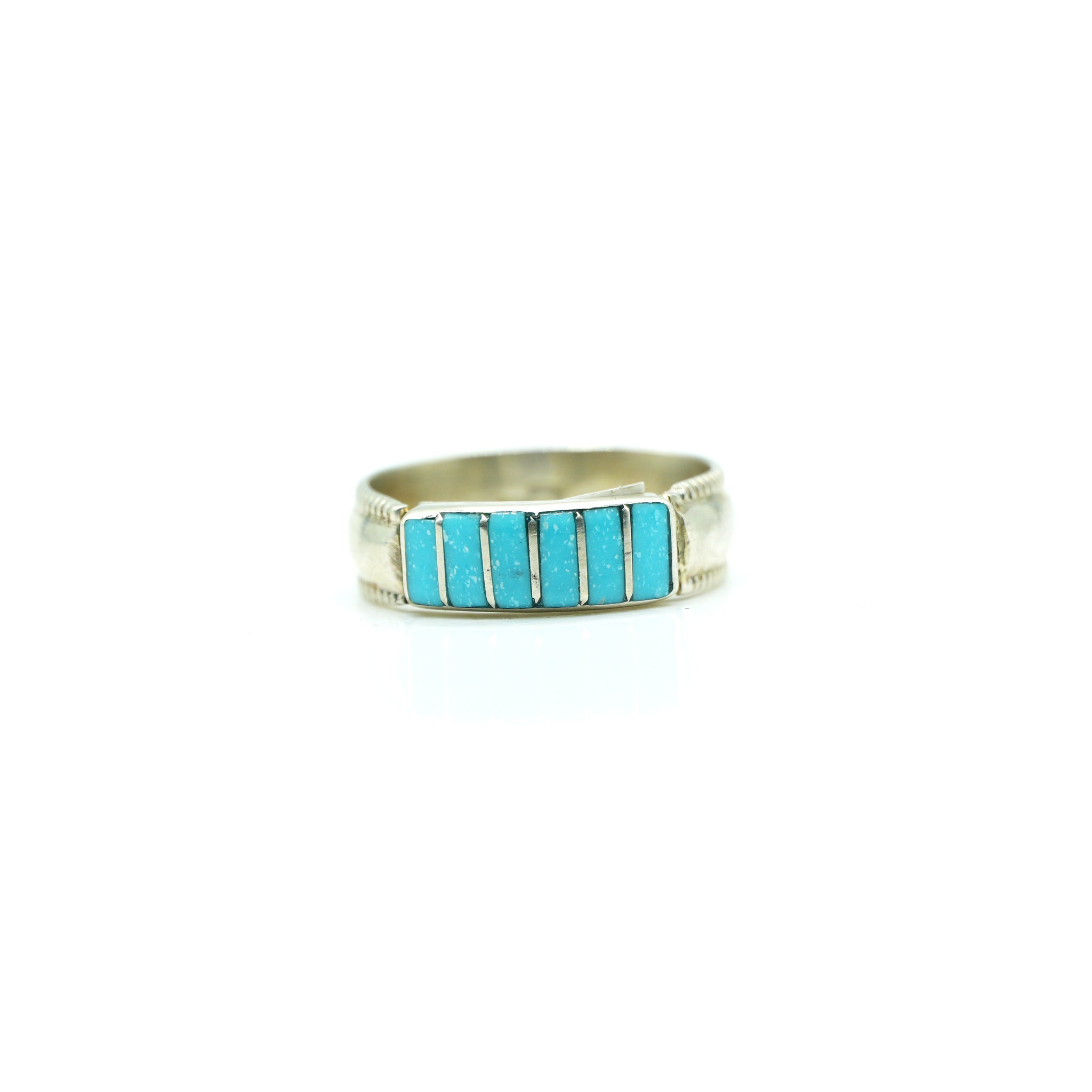 Channel Inlay is most commonly found within Zuni mixed stone jewellery. Silver Channel Inlay is a variation of Mosaic Inlay, in this method, the artisan creates soldered silver compartments within the base piece of the jewellery, the artist then individually cuts each stone to perfectly fit within these compartments, known as channels. The integrity of the stones and the aesthetics of the piece are strengthened by this technique.